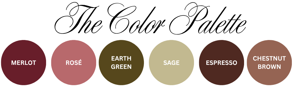 Please join us in formal attire inspired by our wedding palette - think shades of rich merlot, earthy greens, and deep espresso browns.